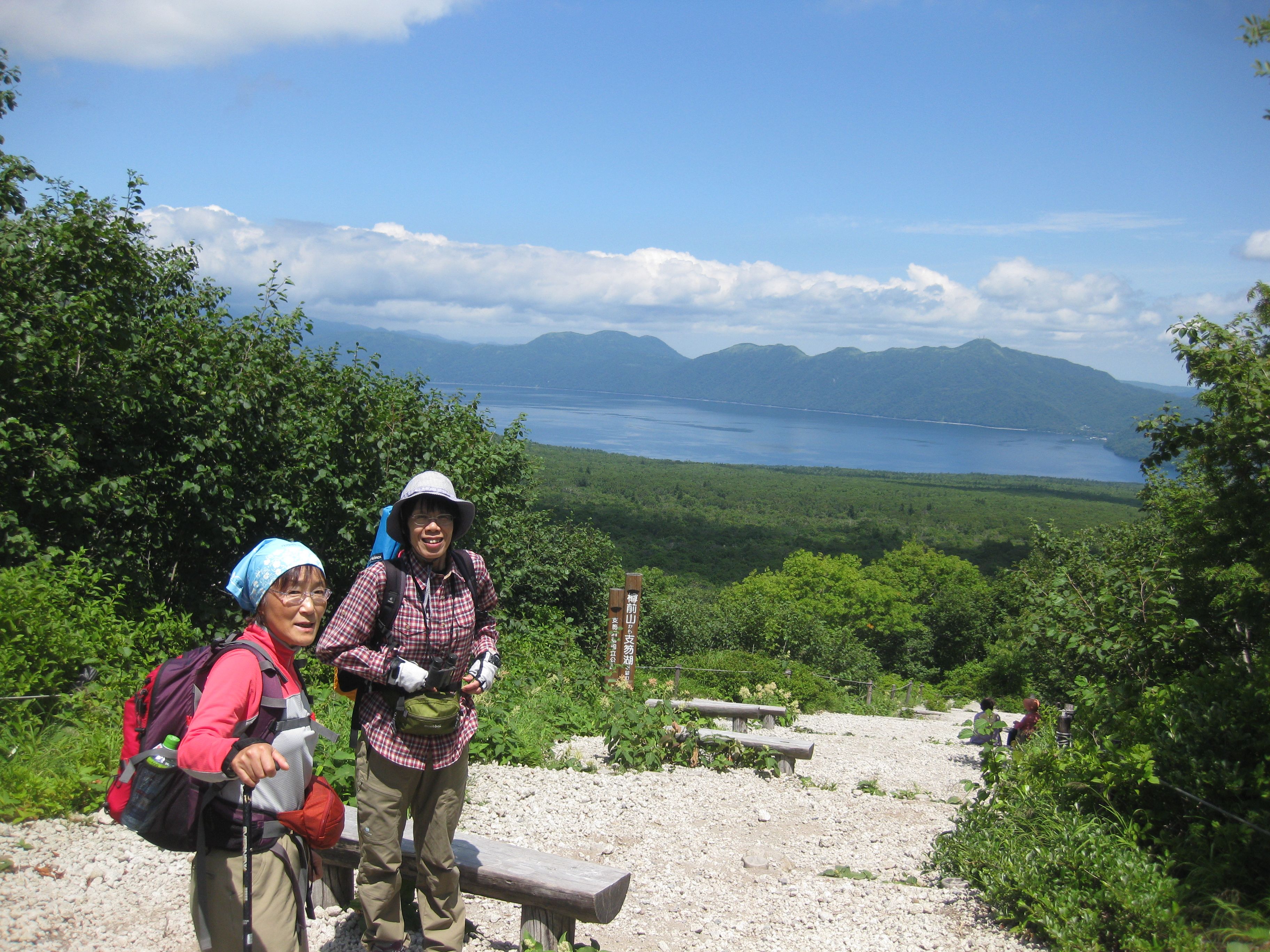 登山口よりずっと下のゲート前の林道に、車がずらりと並んでいる。そしてゲートは閉まっている。・・・「こりゃあだめだ、登山をやめようか?」と相談しつつ、係りの方に話しかけると、下山者が降りてくるから1~2台は入れる、と言ってゲートを開けてくれた。11時からの登山が功を奏したようだ。林道を歩いている登山者に申し訳なく思いつつ7合目駐車場へ。ちょっと歩くだけで大展望が開ける樽前山。人気があるわけだ。若者や家族連れも多い。支笏湖から見ると、確かに「樽」を(背後において)かぶっている山のように見える。2時間半の山登りだったが、昨日の夕張岳とは全く違う山容で楽しめた。今回は無理かな、と諦めていた北海道山行、思いがけず2山に登れて感謝です。これからもお二人の足を引っ張らないようにトレーニングを続けたいです。