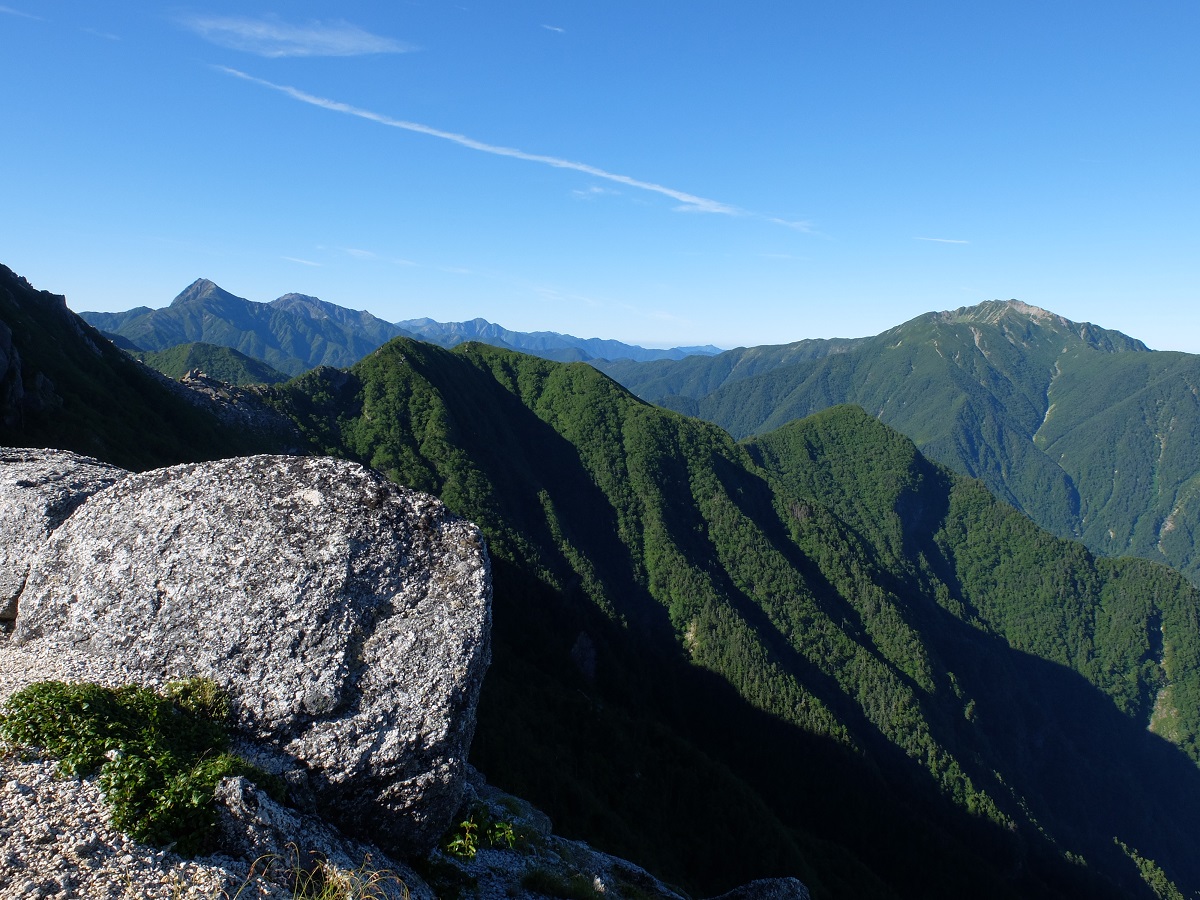 初日かなりばててしまい運動不足を痛感しました。黒戸尾根の七丈小屋までは樹林帯を歩くためほとんど山並みを見ることはできません。この日はガスが多くあまり天候はよくありませんでしたが結果オーライでした。小屋の主はネット上に紹介されているとおり曲者でした。詳細は定例会で。翌日は長丁場の八丁尾根トライです。天気は打って変わってほぼ快晴。甲斐駒手前での見事な日の出、山頂での360度の展望。穂高連峰、乗鞍、御嶽、中央アルプス、八ヶ岳、そして富士山、さらに南アルプスの展望、なかなかここまで澄み切った全貌がみられるのは珍しいとただ感激。ところがここからが大変。長かった、厳しかった、疲れた…道は整備されているのに。このへんも定例会で。全般的に疲労が激しかったが思い出に残る良い山行がメンバーのおかげでできました。お疲れさまでした。ありがとうございました。