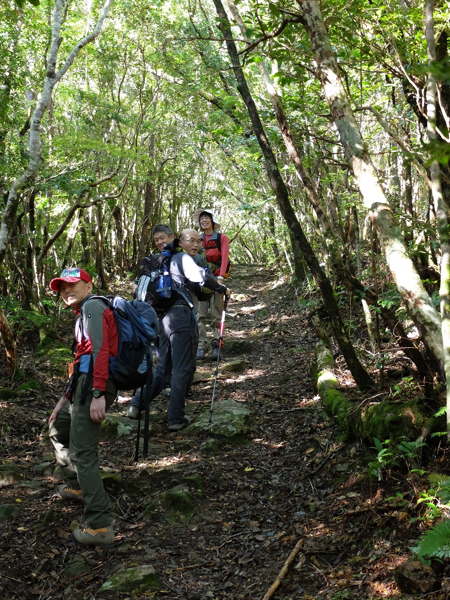 熊野古道②は小辺路コース最後の峠越えを山行しました。今も古道の雰囲気を残しているコースでした。(奥深い場所でした)特に果無峠の登りは石畳が残っていました。三十三体の観音石仏を見ながらの山行、ハードなコースの中にも古道を感じられる区間でした。お宿は川湯温泉。川の露天風呂、部屋、食事いずれも良かった。リーダー、長旅の運転ありがとうございました。皆さんお疲れ様でした。熊野古道③も期待しています!