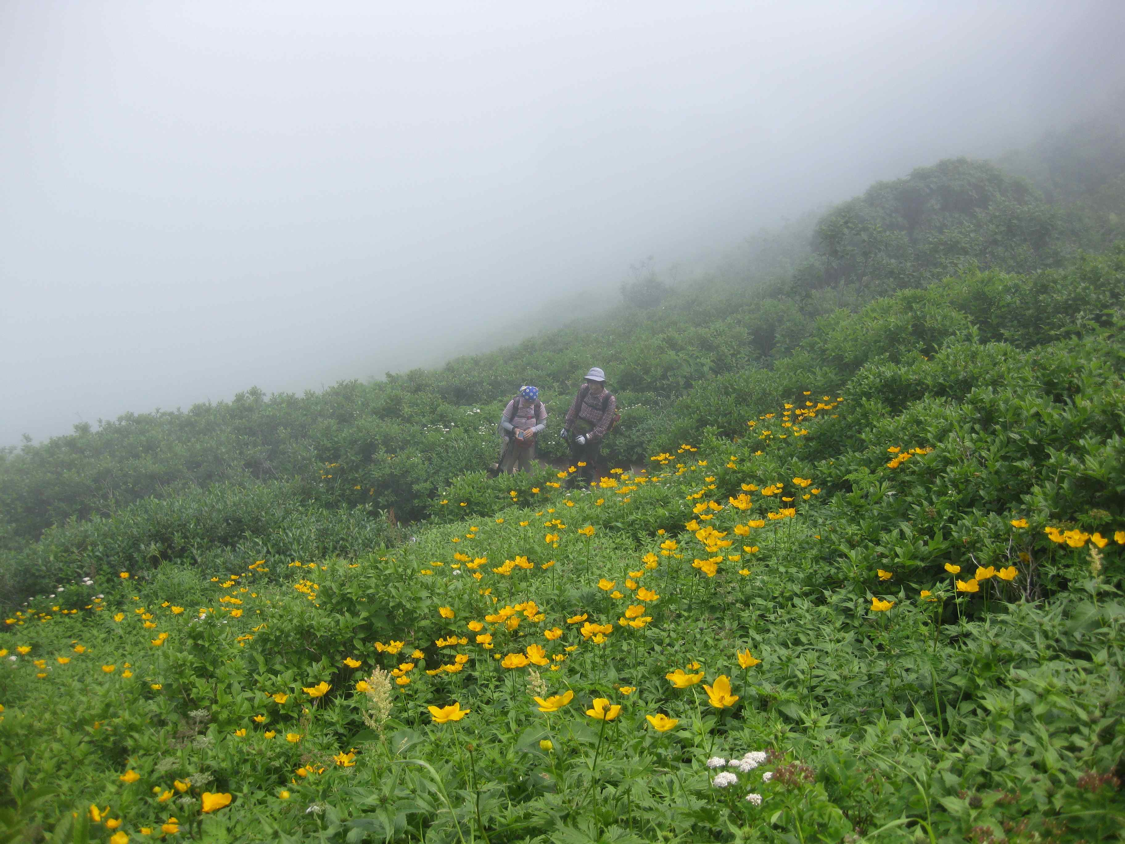黒岳頂上は、昨日の強風がまだ残っている感じでした。しかし山頂からは「これぞ北海道」と言う感じの素晴らしい景色を楽しむことができました。昨日の赤岳と同様たくさんの花達が登山道の両方に咲き、疲れを忘れさせてくれました。