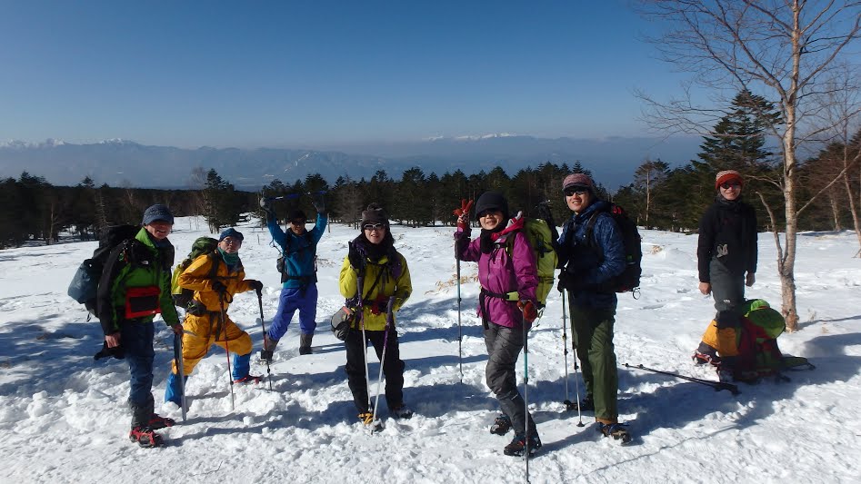 また白駒池までの道のりは大変楽しいものでした。シカにも遭遇。恒例の雪山登山訓練、滑落時のピッケルの使用方法、稜線での歩き方を学ぶ事が出来ました。北、南、中央とアルプスを展望でき 八ヶ岳は荒々しく綺麗でした。皆様どうもありがとうございました。 |