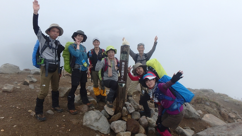 心配された雨も登り始めだけでした。これも参加された皆さんの日頃の行いのおかげかな?諦めていた景色も少ないながらも見る事ができて良かったです。