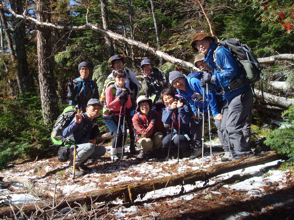 真っ白な富士山と青空、ナナカマドの赤がとても印象的でした。雪が積もり計画通りには歩けませんでしたが、紅葉も始まり秋を感じながらのよい山行となりました。皆さんお疲れ様でした。
