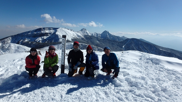 天狗岳は、冬山登山の入門コースと言われるように、今回も多くの団体ツアーを見かけました。私たちも冬山初心者ばかりのチームで不安がありましたが、登山した土曜日は、天気が良かったので危険箇所も無く、絶好の登山日よりで雪もふかふか、頂上の風も弱く、360度のパノラマを満喫できました。黒百合ヒュッテに泊まり、2日目の日曜日は、雪がちらつきましたが、遠くの山々の景色は良く見え、雪景色も楽しめました。夏行った時、山小屋の人が冬の方が岩のごつごつが雪で埋もれ歩きやすいよと言った通りで、気持ち良く歩けました。目的の1つの高見石の揚げパンも揚げたてふさふさで美味しく食べることが出来皆さん満足でした。