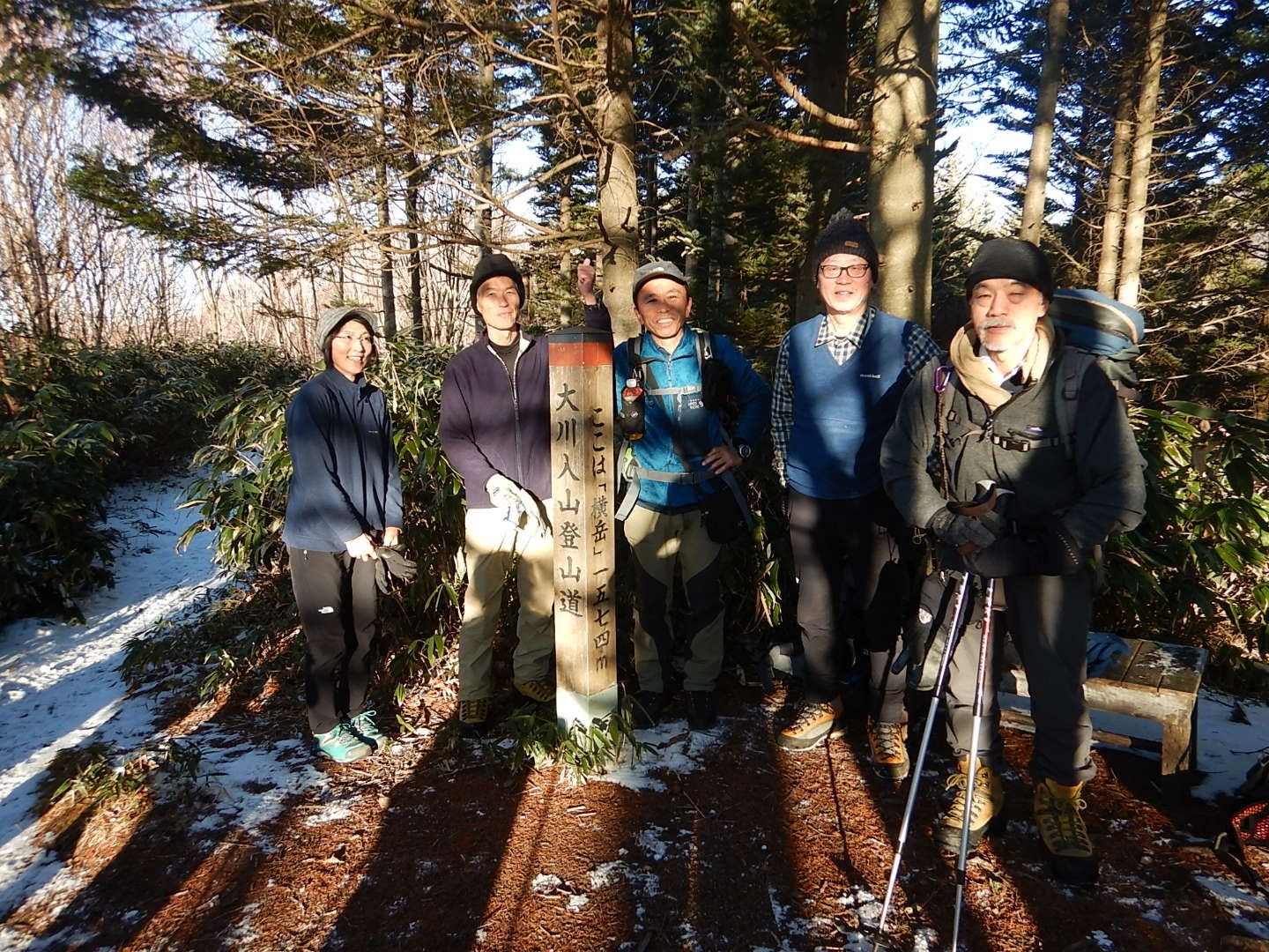 今年も最後の山行は大川入山で無事終える事が出来ました、予報は曇り時々晴れでしたが風もなく素晴らしい晴天で積雪量が少ない事を除けば完璧な年末の大川入山でした。
