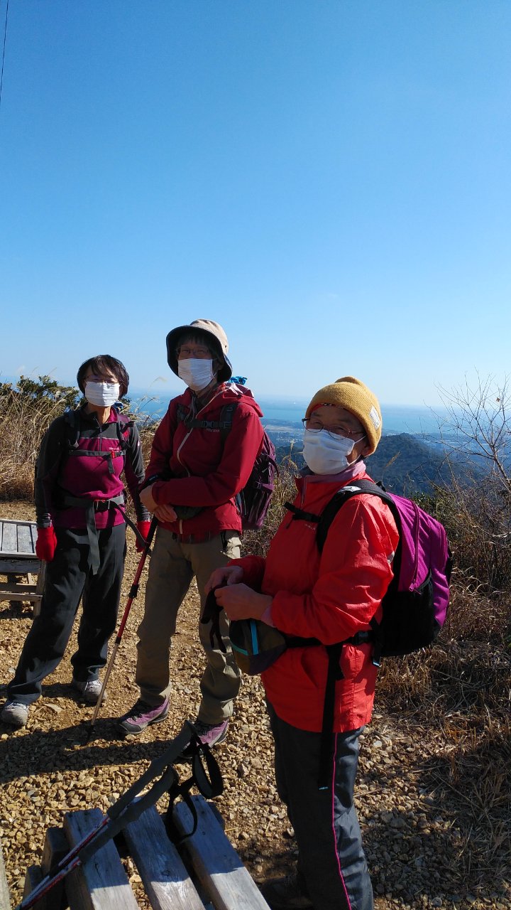 コロナ渦のなか、近場の山を楽しもうと言う登山者がたくさんいました。子どもたちから年配の方々までみんなそれぞれの楽しみ方をしていました。風が無い陽だまりはポカポカ、日陰の風が通るところではブルブル。薄っすら富士山も見ることができ、楽しく歩くことができました。