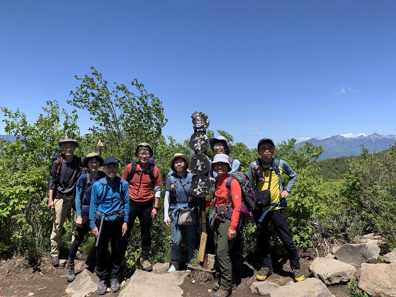 好天にも恵まれ、山頂からの景気は素晴らしかったです。特に雪を抱いた北アルプスは、今しか見られない眺めでした。後半は、少しバテましたが、皆さんのお蔭で何とか下山できました。ありがとうございます。