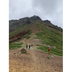 中岳のコルからは噂に聞いていた急斜面でかなり迫力がありました。石を落とさない様に神経は使いましたが、登ってみると高度感もなく意外とすんなり山頂に着きました。