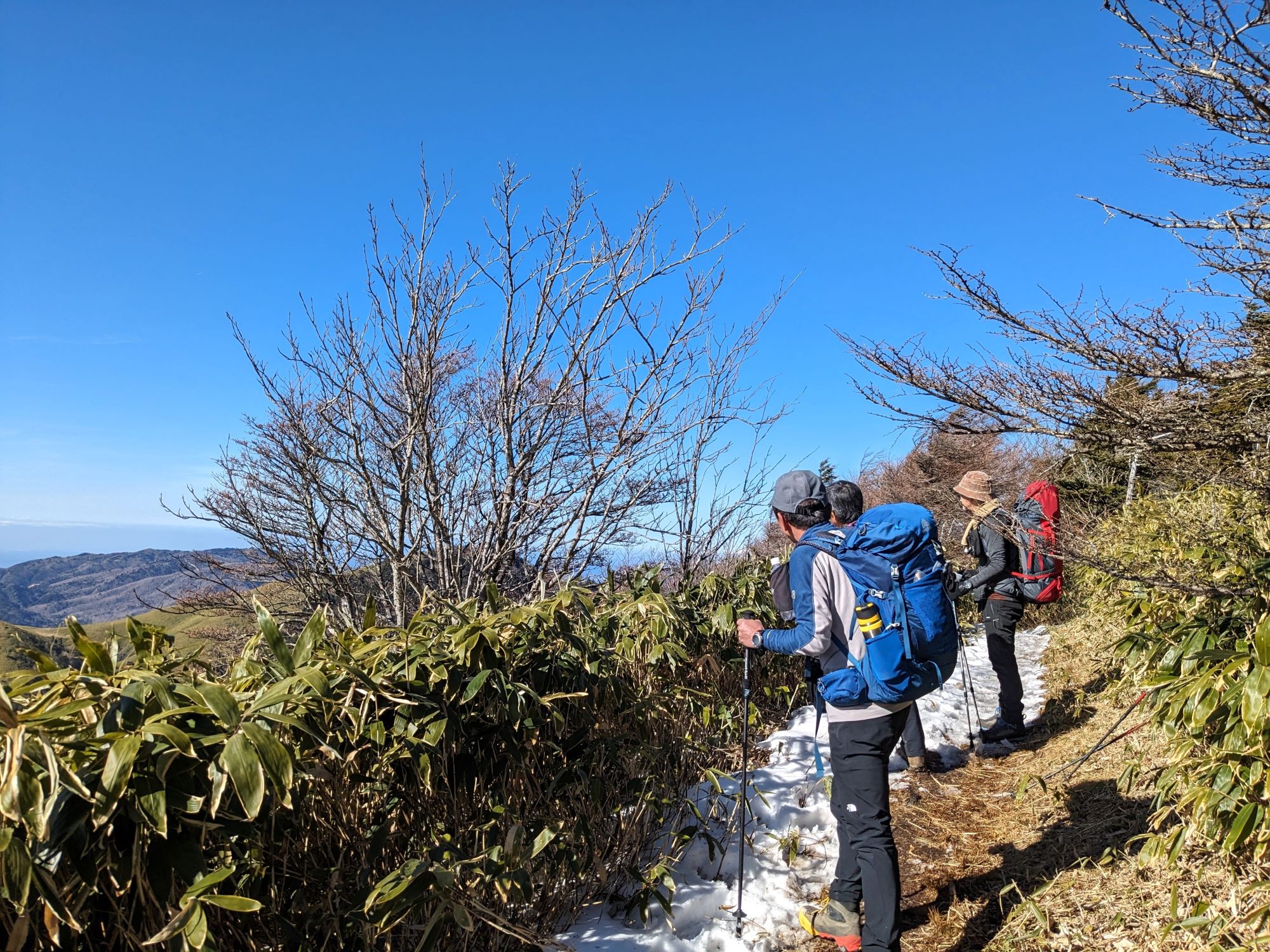 残念ながら期待していた積雪は有りませんでしたが暖かく風が無く快晴の山行が楽しめました、山頂付近から望める熊笹の景色が素晴らしく、穏やかな今年の登り納めの山行でした。