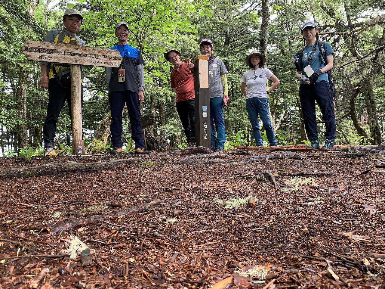 出発時は小雨で、登山口に着いた時雨はやみ、鹿ゲートをくぐり、稜線までひと登り!南アルプス展望台に着き、雲の少し掛かった南アルプスの山々を見ることが出来ました。登山口の標高が高い為2000Mの山と思えないフラットの稜線歩きで、巨木が多く、いい感じの森でした。アヤメも少し早いようですが見ることが出来、楽しい山行が出来ました。