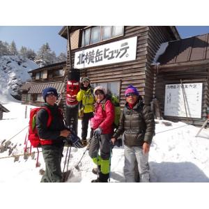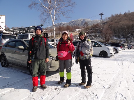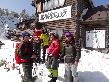 冬山経験が皆無に等しいメンバーでの今回の山行・・とにかく安全第一・天候によってはロープーウェイまでの覚悟・・そんな気持ちで望んだ山行でしたが、幸いにも天候に恵まれ、計画通りの山登りを体験出来ました。アイゼンをつけての歩行・・装備等の事前準備・・みな・ほぼ初体験でしたが数少ない、思い出に残る楽しい山登りが出来ました。北横岳ヒュッテへの登りの途中・・伊藤桃子さんからの電話、そして出会い・・大変勇気づけられました。ありがとう・・桃子さん 仲間っていいもんですね・・ そして・同行くださった、メンバーの みんな・・ありがとう