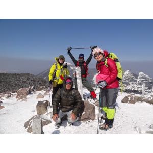 初めての雪山登山でしたが、初心者向けということで、当日は他の登山者も多く、安全に山行することができました。晴天に恵まれ気温も普段よりは高そうでしたが、頂上は風が強く寒かった・・・。木にはえびの尻尾も。遠方の山は残念ながら望むことができず残念。