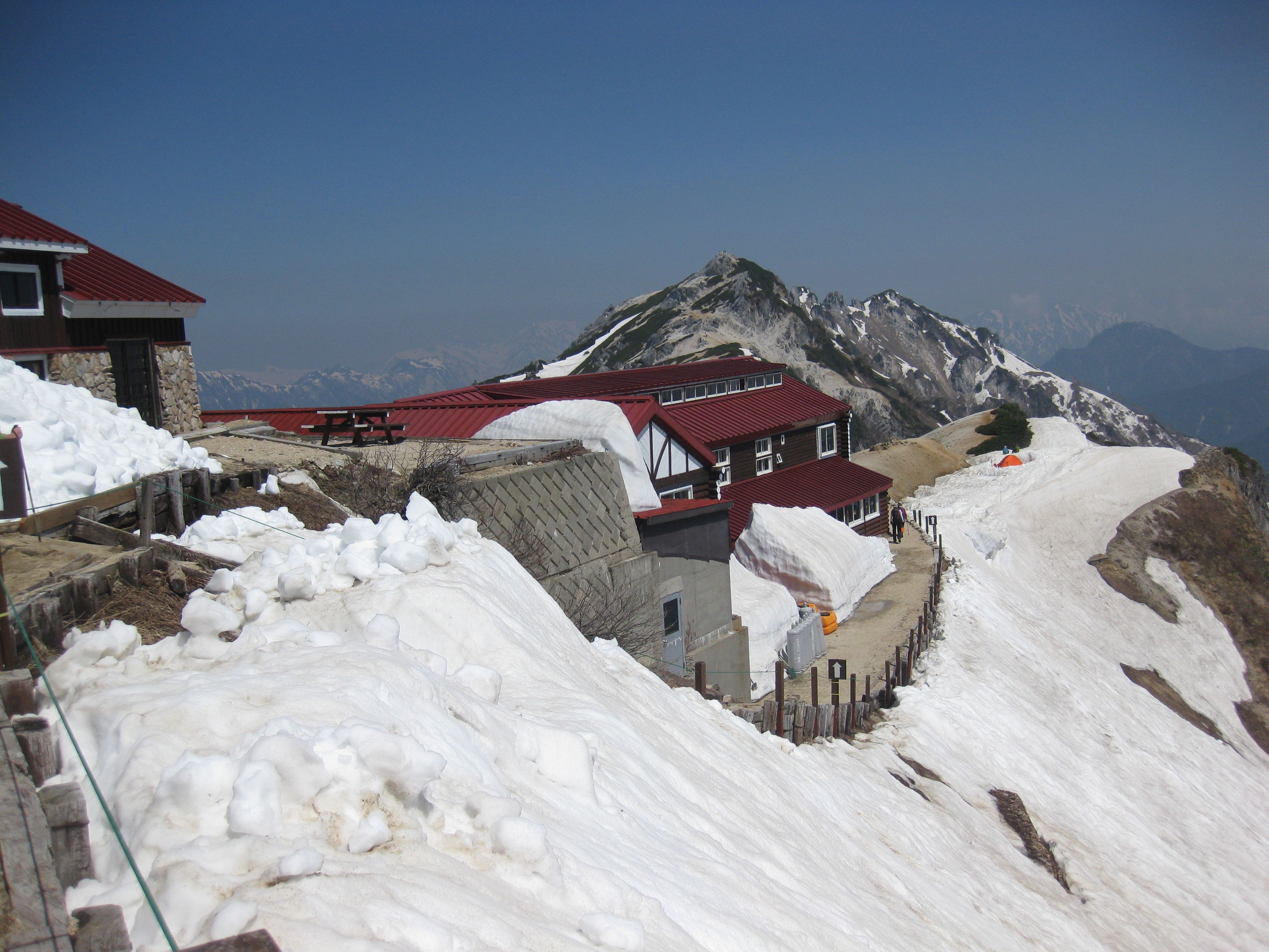 最高の天気の中、北アルプス三大急登の一つといわれている合戦尾根に挑戦。今回で三回目の燕であったが本日の天気同様に体調も良く、小アクシデントが二つありましたが、途中鶯の鳴く風景を間近で見られ、ショウジョウバカマのかわいいピンク、オオカメノキの純白の花を眺めながらのほぼ順調な登山ができました。テント場には10張りほどが昼ごろには出来ており、これ以上はどこへ張るのだろうというくらい狭いテン場と感じました。それにしてもほぼモンベルばかり。遅い到着では場所を選ぶことは無理。当初予定のテント泊でなく良かったと痛感。一夜行のピストン山行は非常に疲れる。今後は要検討です。皆さんご苦労様でした。