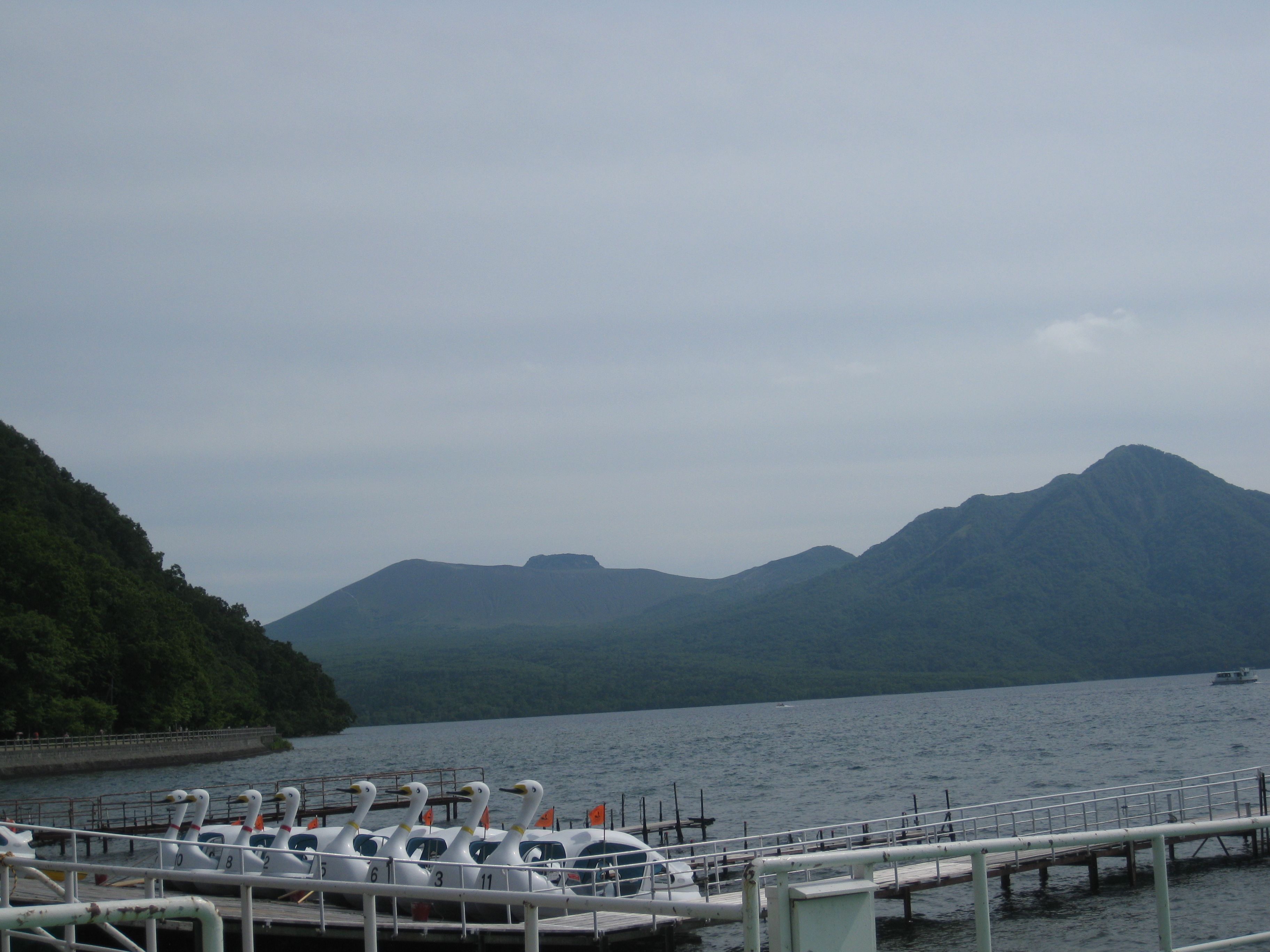 7合目まで車で入ることができ、支笏湖を背中に1時間ほどで山頂にたつことができる。活火山である樽前山は、白い噴煙が上がり硫黄の臭いもしている。上部には噴火でできたドームが黒く見える。このドームが支笏湖湖畔より見ると『樽』のように見ることができる。これが名前の由来かなと勝手に3人で想像しながらソフトクリームを頂く。