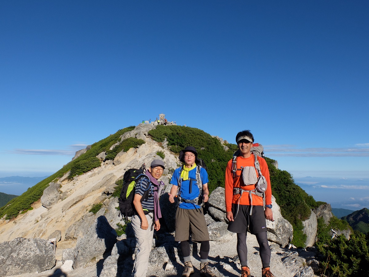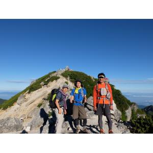 黒戸尾根から七丈小屋までのルートは高度感のある梯子や鎖場が連続であり、緊張した登山になりました。二日目は天気に恵まれ日の出、アルプスの山々を眺望し堪能できました。雷鳥の親子にも出会いました。甲斐駒を下り、三ツ頭、烏帽子岳、大岩山のルートはさらに緊張したものでした。途中からへとへとになり大変疲れました。今回も貴重な体験をすることができました。リーダー、メンバーありがとうございました。
