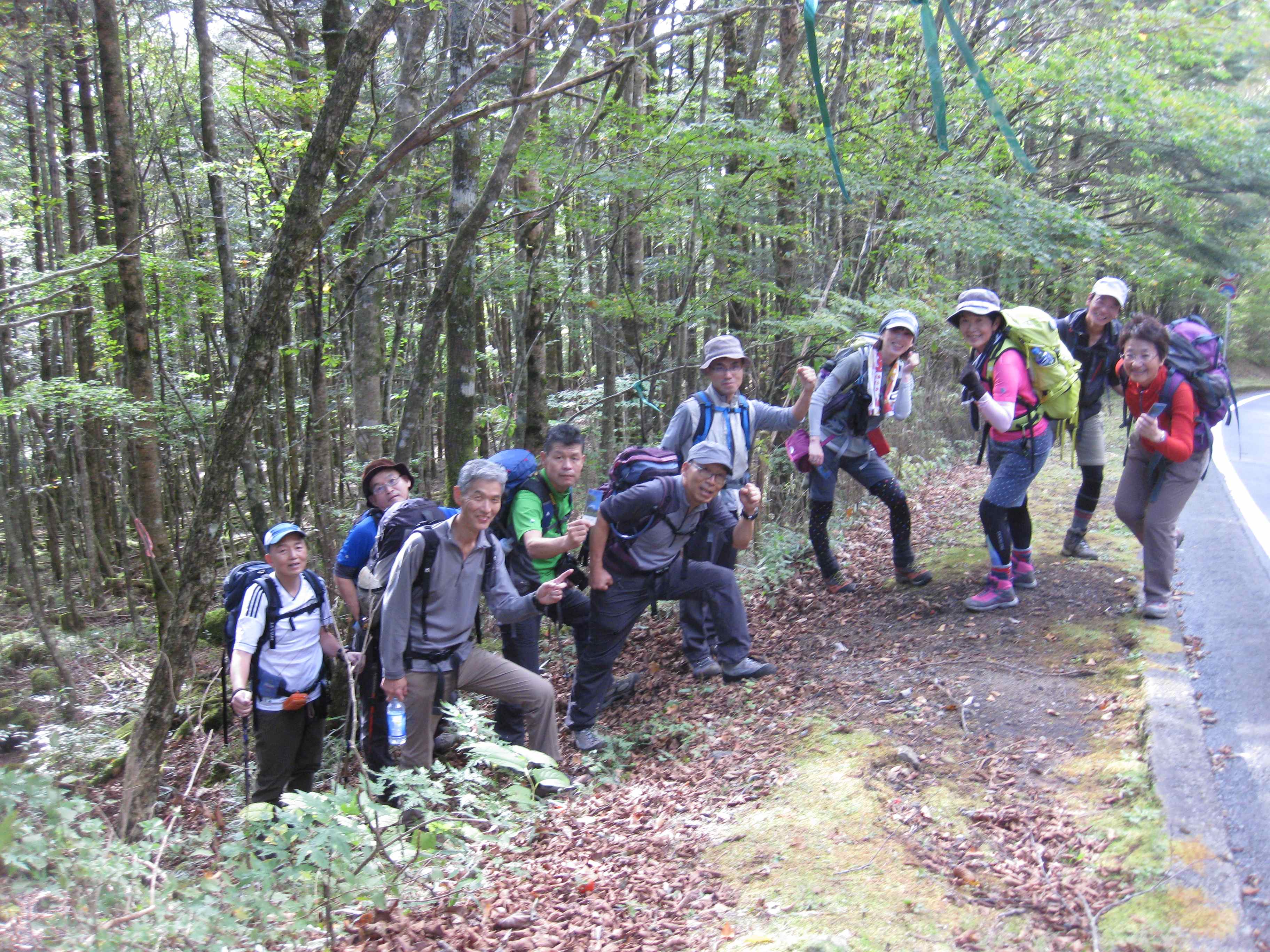 紅葉がどこまで下りてきているかな?と少し期待しましたが残念ながら今年の紅葉は遅そうです。神社から中間までは植林された樹林を歩きましたがここが曲者でした。どこで間違えたか30分ぐらいロスしてしまい、これが一番の疲労でした。とは言え後半の苔むした広葉樹林帯は道もはっきりしており十分古道を楽しむことができ来年の古道②に期待です。ありがとうございました。
