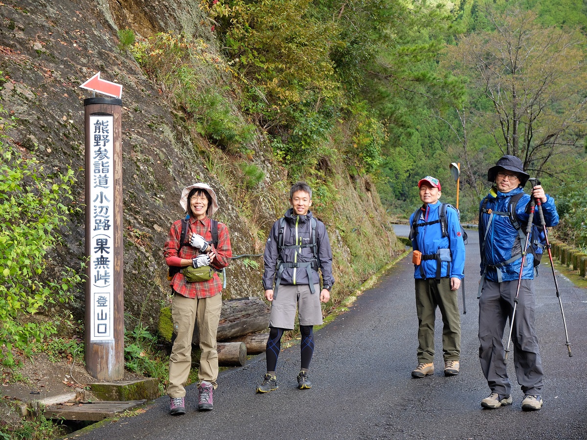 熊野古道②は小辺路コース最後の峠越えを山行しました。今も古道の雰囲気を残しているコースでした。(奥深い場所でした)特に果無峠の登りは石畳が残っていました。三十三体の観音石仏を見ながらの山行、ハードなコースの中にも古道を感じられる区間でした。お宿は川湯温泉。川の露天風呂、部屋、食事いずれも良かった。リーダー、長旅の運転ありがとうございました。皆さんお疲れ様でした。熊野古道③も期待しています!