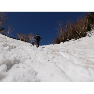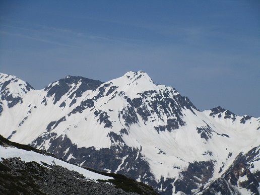 5月晴れで風もなく気持ちの良い?(汗びしょり)山行でした。雪渓には崩跡が生々しく残りまだ多くの雪がありました。胸突き八丁はやはりきつかったです。小屋からの常念岳へはライチョウがまじかに見ることができとてもラッキーでした。山行時間11時間ですが参加者全員がよく頑張りました。