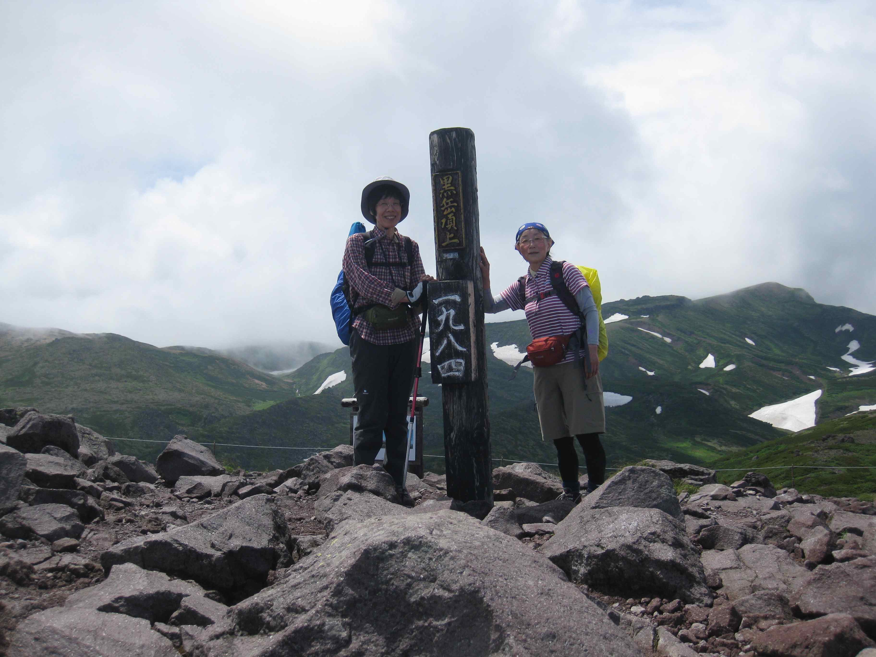 黒岳頂上は、昨日の強風がまだ残っている感じでした。しかし山頂からは「これぞ北海道」と言う感じの素晴らしい景色を楽しむことができました。昨日の赤岳と同様たくさんの花達が登山道の両方に咲き、疲れを忘れさせてくれました。