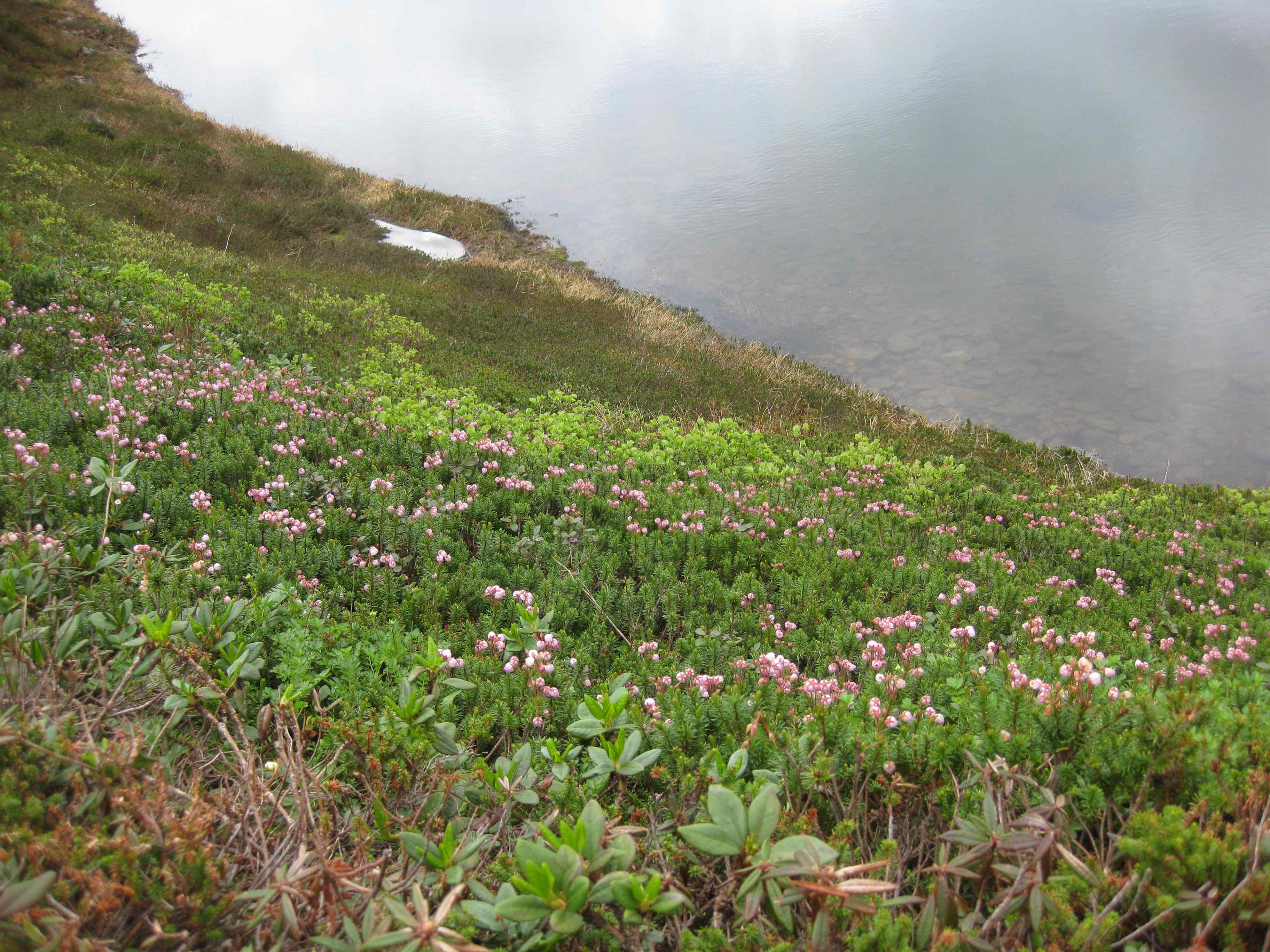 土砂崩れのために雨竜沼湿原に入れず、また天候も不安定だったため、急きょ安全策を取って旭岳に登ることにした(新計画を送信できなかったため、残留の方には口頭で連絡)。朝になっても雨はやまず、ロープウェイ駅からカッパを着てスタート。周りはガスだが、チングルマやエゾコザクラ、キバナシャクナゲを楽しみながら登って行った。7合目付近ではイワツバメに出会う。山頂も真っ白だったが、あ~ら不思議、登頂後数分したら劇的に晴れて、黒岳まで見える360度の展望に!山頂は歓喜の声が響き、ツアーの登山者たちは涙していた。こんなこともあるから、やっぱり山はやめられないな~、と改めて思った北海道山行でした。