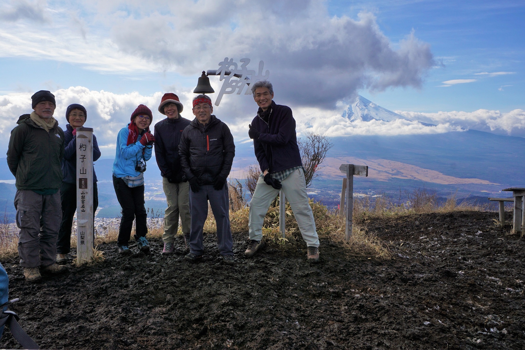 心配だった天気はずっと良く目の前の富士山をばっちりと堪能できた。朝の気温-6度と寒く霜柱が登山道に多くあり、サクサクと気持ちの良い場面が多くあった。頂上のぬかるみはドロドロで大変でしたが、すがすがしい山行でした。ただ、台風?の影響か倒木が多かったのは少し残念でした。