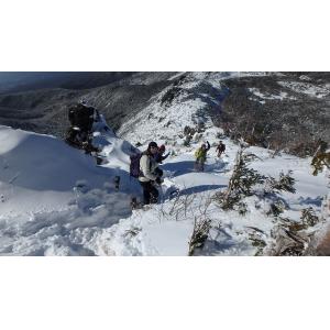 天狗岳はお天気最高で八ヶ岳ブルーとふかふか雪ではじめての本格雪山登山でしたが楽しむことができました。風も少なく山頂からの眺めも最高でした。翌日は曇りながらも高見石、雪のたっぷり乗った白駒池を楽しみ、揚げパンも美味しくいただきました。下山は粉雪降るも気持ちよく歩けました。渋の湯でカモシカさんのお見送りもあり、楽しい山行きでした。みなさんありがとうございました。