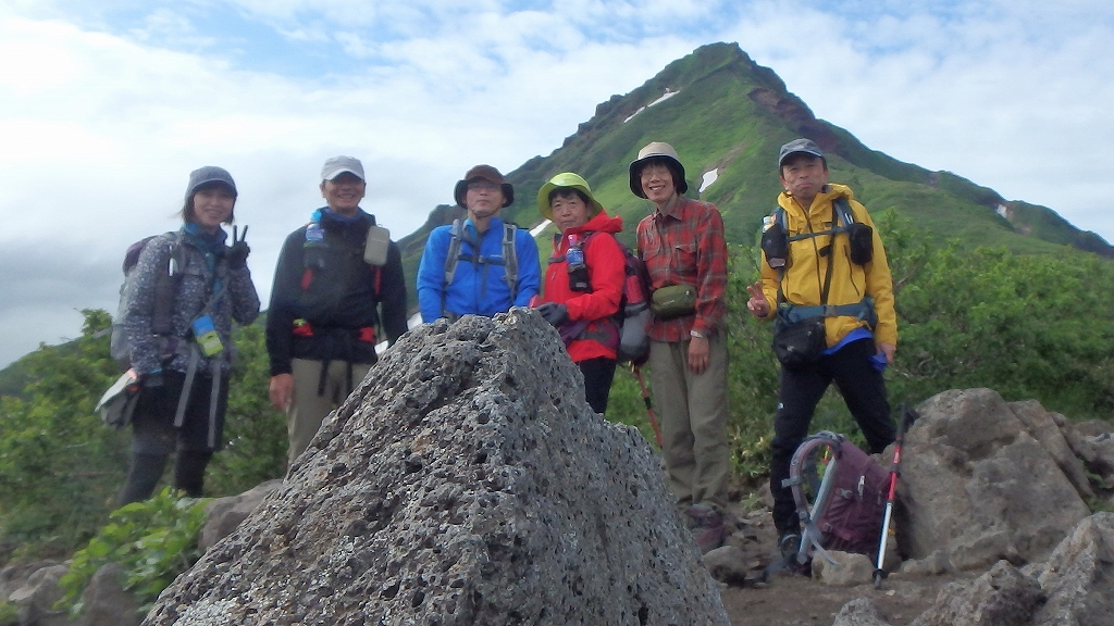 いつかは登りたいと思っていたので、記念山行、屋久島に続いて第二弾の利尻・礼文にも参加させて頂きました。天候が心配されましたが、登山日だけは、晴天に恵まれ運の強さを感じました。利尻山の登山道はかなり整備されていて、森林部は景色がありませんでしたが、8合目の長官山まで上がると展望が開け、美しい海と礼文島が見下ろせて、また利尻山がドッカンと目の前に現れ感激しました。そこから急坂ですべりやすい登山道を登りたどり着いた頂上からの景色は大パノラマで、絶景を楽しむことが出来ました。しかし、下りで小石に足を取られ、2回も尻餅をついてしまいました。途中風の強い所がありましたが頂上は風も弱く暖たかく昼食も美味しく食べれました。礼文と利尻の島巡りは小雨/曇りでしたが、4日間、本当に楽しい旅でした。企画して頂いたリーダー及びメンバーの方ありがとうございました。