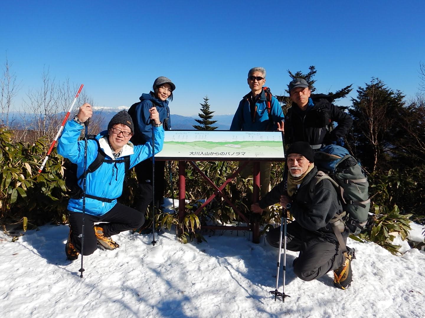 今年も最後の山行は大川入山で無事終える事が出来ました、予報は曇り時々晴れでしたが風もなく素晴らしい晴天で積雪量が少ない事を除けば完璧な年末の大川入山でした。
