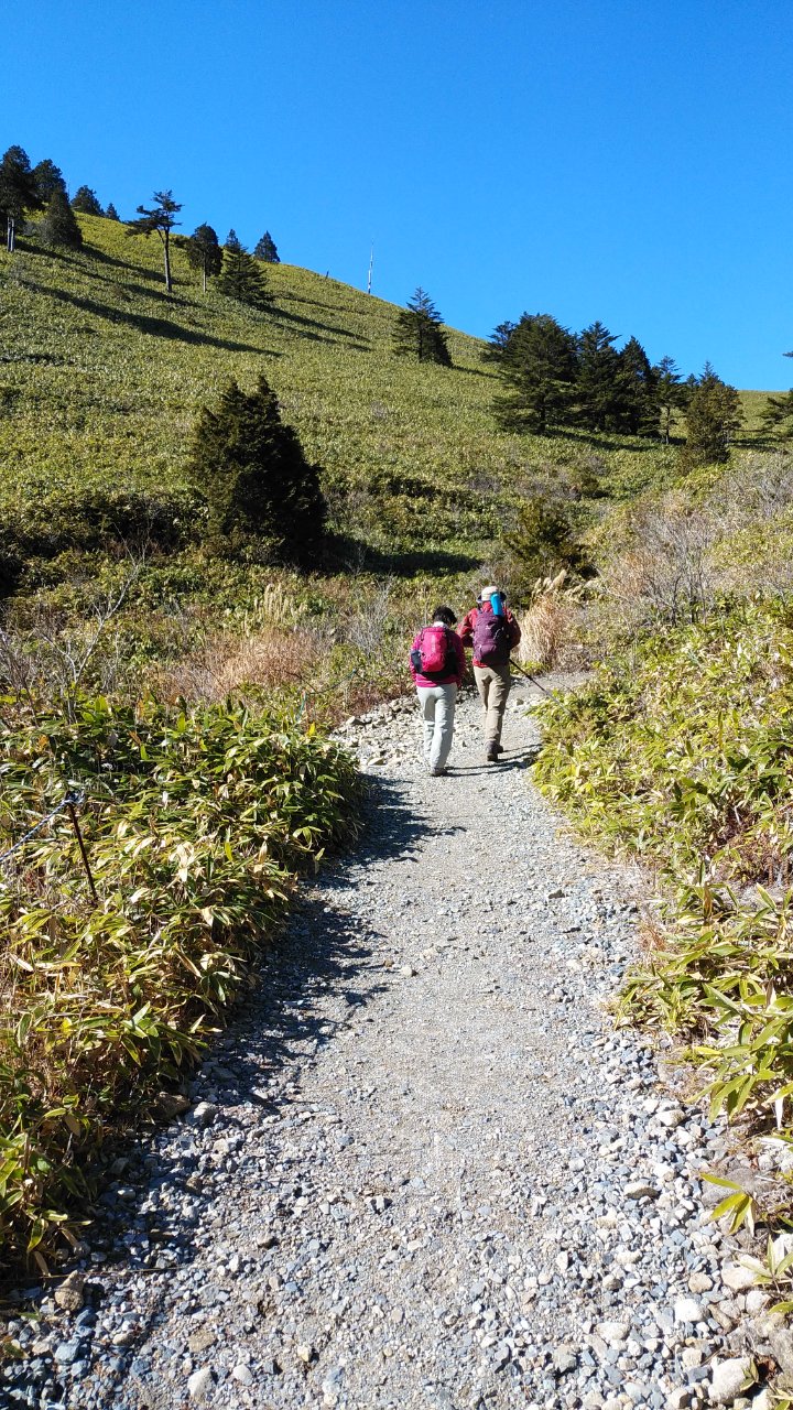 今日は天空のお散歩かなあ、と軽い気持ちで出かけたが、リフトを降りた時の気温は0.8度。空は真っ白でしぐれそうな雲行きだった。あわててダウンを着て歩き出すが、フリース手袋の中の手先も凍え、この先どうなるかと思った。久しぶりの《衣類の選択・大失敗》で、山を軽く見た罰が当たりました。その後、幸いにも青空が出て、富士見台高原に着いた時は360度の展望に恵まれ南アルプスが良く見えた。萬岳荘、神坂小屋(避難小屋)も雰囲気があって良かった。途中で、誤って恵那山に向かう道に入り込んだが、次回は恵那山に登りたいなと思った。ありがとうございました。