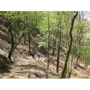 新緑の中、気持ちよく歩くことが出来ました。一昨日の雨の後なので、沢の水量も多く音も大きく聞こえ楽しめました。稜線上は風が強く寒い位でしたが、風が来ない陽だまりは暖かでした。トレーニングの山『竜頭山』ですが四季それぞれ楽しめる山です。