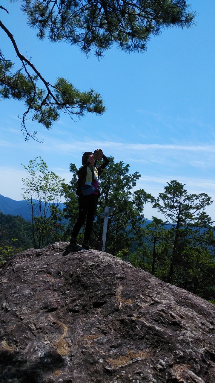 梅雨の晴れ間の天気の良い中歩くことが出来ました。新緑がキラキラと光り日影のなかの風が心地よく感じられました。岩場のアップダウンが楽しい山で、4月末から5月上旬にはシャクナゲの花が見られるようです。