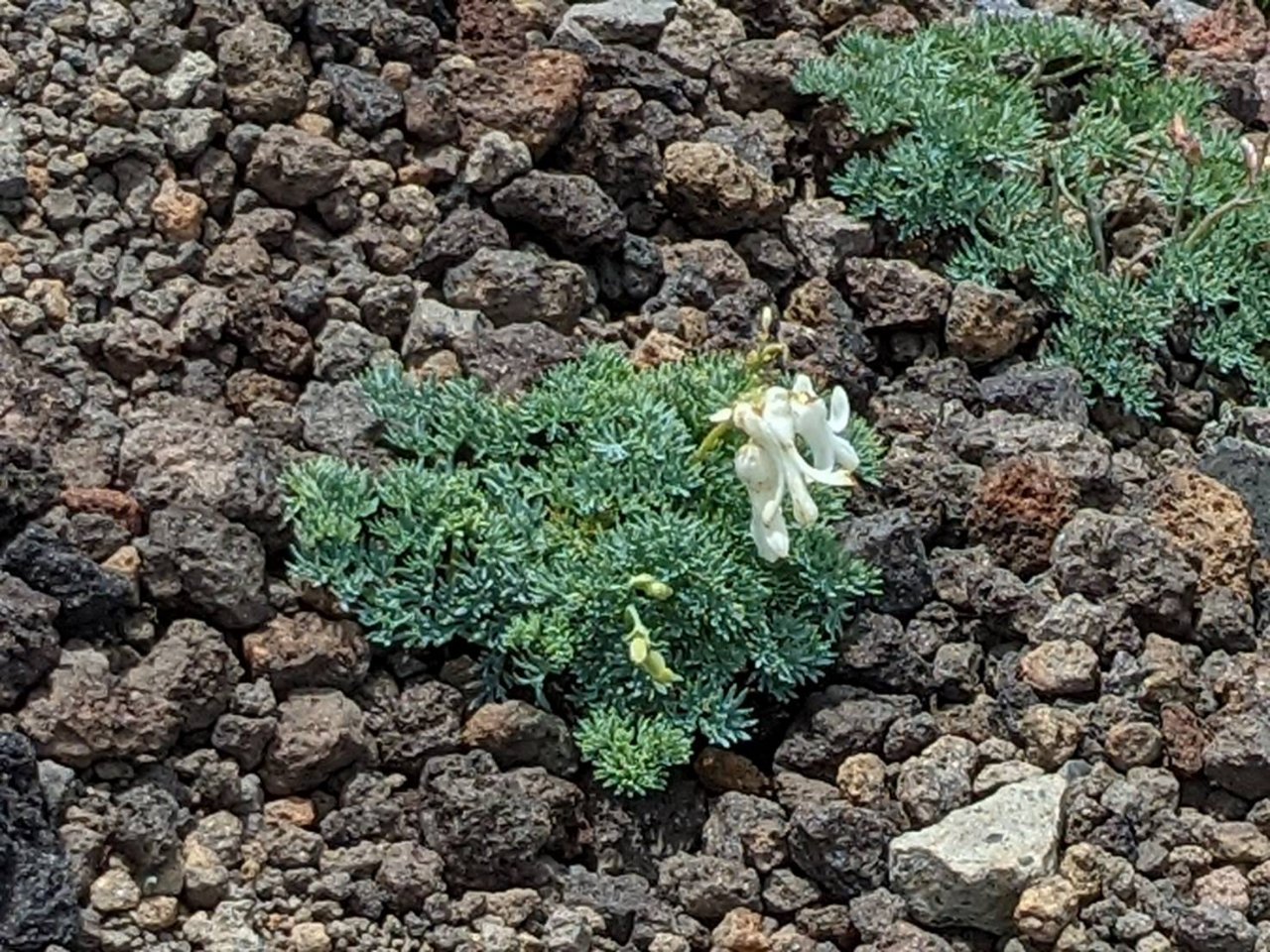 久しぶりの重たいに荷物にオーレン小屋までがとても長がーく感じました。天狗岳からは、明日登る赤岳が見え青空の下楽しめました。2日目は朝から曇り空、硫黄岳に着く頃から辺り一面ガスで真っ白、東斜面から吹き上がってくる風は冷たかっったのですが、ガスの動きが早いので天気の回復を期待しつつ赤岳へ向かいました。横岳の岩場あたりから青空が出始め赤岳山頂に着く頃には真っ青な青空に変わりました。山頂から見る硫黄岳付近はまだガスの中でした。 横岳と硫黄岳山荘の間の登山道の両方にコマクサが保護されていて、可愛らしいコマクサたちが一面に咲き競っていました。寒さや強風に耐え小さな花達が懸命に咲いている様は感動的でした。(白いコマクサが咲いていました。 |