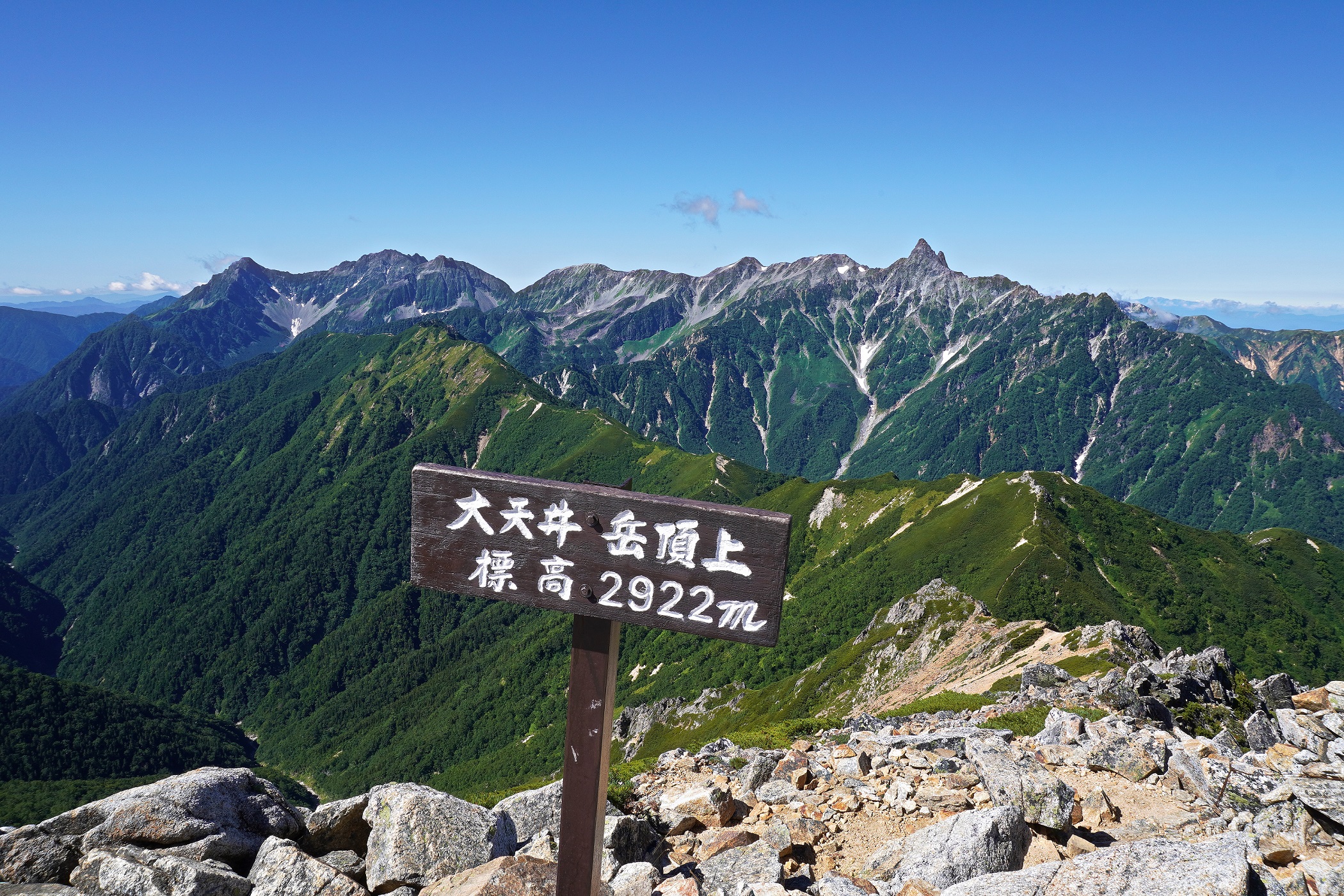 好天が期待できる8月最後の週末とあって大勢の人が来ていました。山小屋も密状態でした。2日目の稜線歩きはやや風が冷たく強くて、涼しく歩けました。快晴で大天井岳の頂上からは北は剣岳、鹿島槍、東に浅間山、南に八ヶ岳、富士山、南アルプス、眼前に槍穂高、裏銀座の山並みが見渡せ、幸せな一日でした。