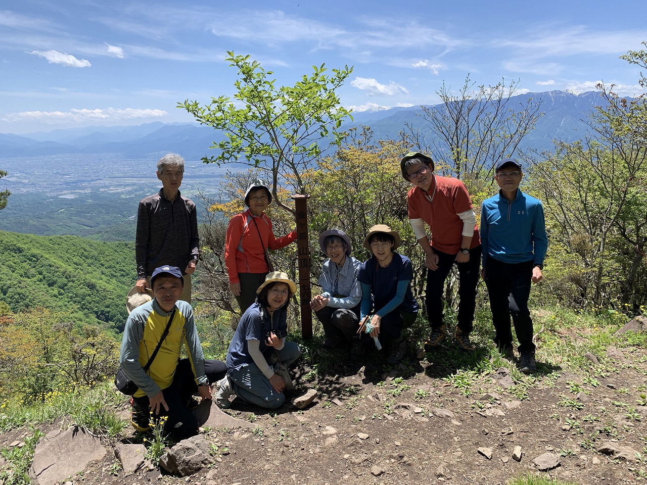 好天にも恵まれ、山頂からの景気は素晴らしかったです。特に雪を抱いた北アルプスは、今しか見られない眺めでした。後半は、少しバテましたが、皆さんのお蔭で何とか下山できました。ありがとうございます。