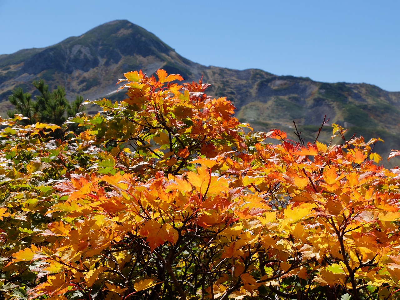 雲一つない快晴の中見頃を迎えた紅葉(9/30付情報)の立山室堂平を気持ちよくスタートできました。多くの緑の木々の中、黄色の草紅葉、カエデ・ウルシ類の黄色と赤、ナナカマドの色づき始めから赤までの変化等ほぼ期待通りの紅葉を満喫できました。山行コースは大日小屋までさほど厳しいところはなくメンバー全員が心地良い歩きができたと思っています。すぐそばには剣岳がドーンと控え、遠くには槍、穂高、笠ヶ岳等をくっきり見ることができ、下方にはっきりと富山湾も眺めることもできました。夜には剣岳の背景と満点の星々。残念ながら私は撮影に失敗しましたが。翌朝も見事な快晴の中日の出を大日岳ほぼ山頂で見ることもできました。称名滝までの下りはややきつかったのですが総じて満足のいく山行ができました。お疲れさまでした。詳細は写真を見ていただければと思います。