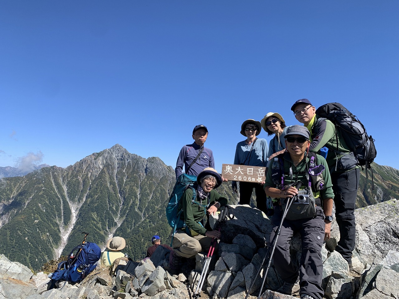 これ以上の青空はないだろう、というくらいの好天のなか、大日三山に登ることができました。立山駅から室堂を経て、ぐるりと一周をめぐるコースなので、一帯の地形やスケールの大きさを体感しました。大日小屋からの剣の格好いいこと!雲海や、夜空の星にも見とれました。ただし、山自体はなかなか手ごわかった。特に大日岳からの下りは緊張の連続で、みんな口数がどんどん少なくなり、最後は無言に・・・。登ってくる方が多く、足場の悪い場所でのすれ違いも難しかった。後続のメンバーに助けられてなんとか無事に下山できました。特に、前泊を含め細かく計画を立ててくださったリーダーさん、遠距離を運転してくださった方、本当にありがとうございました。
