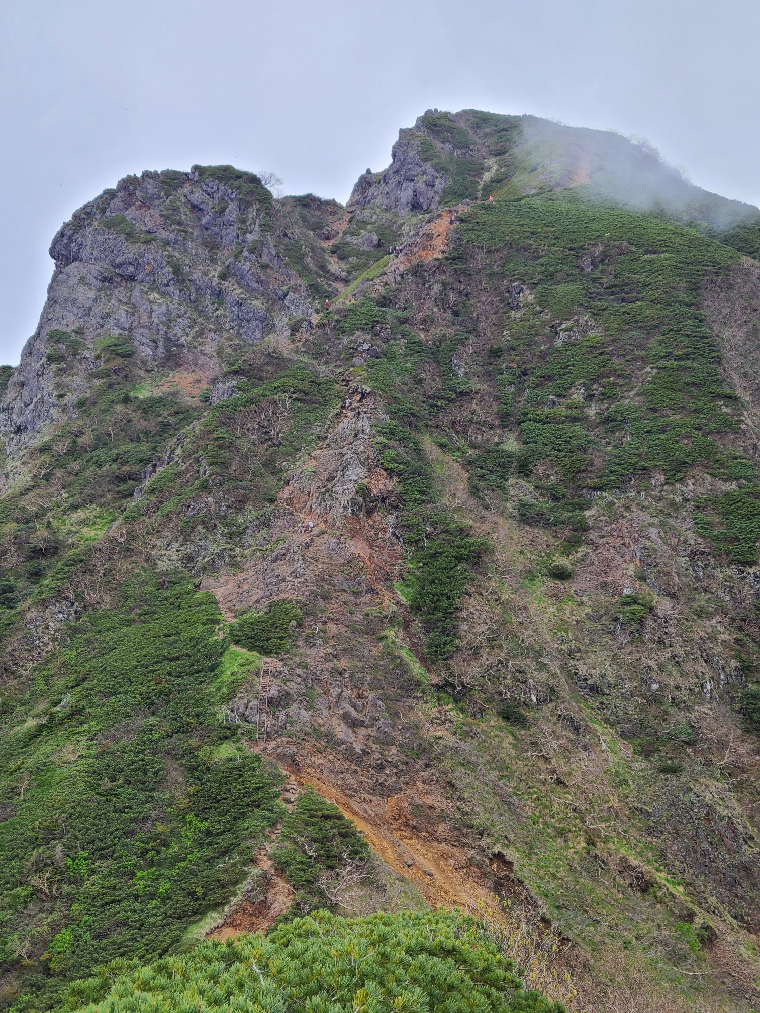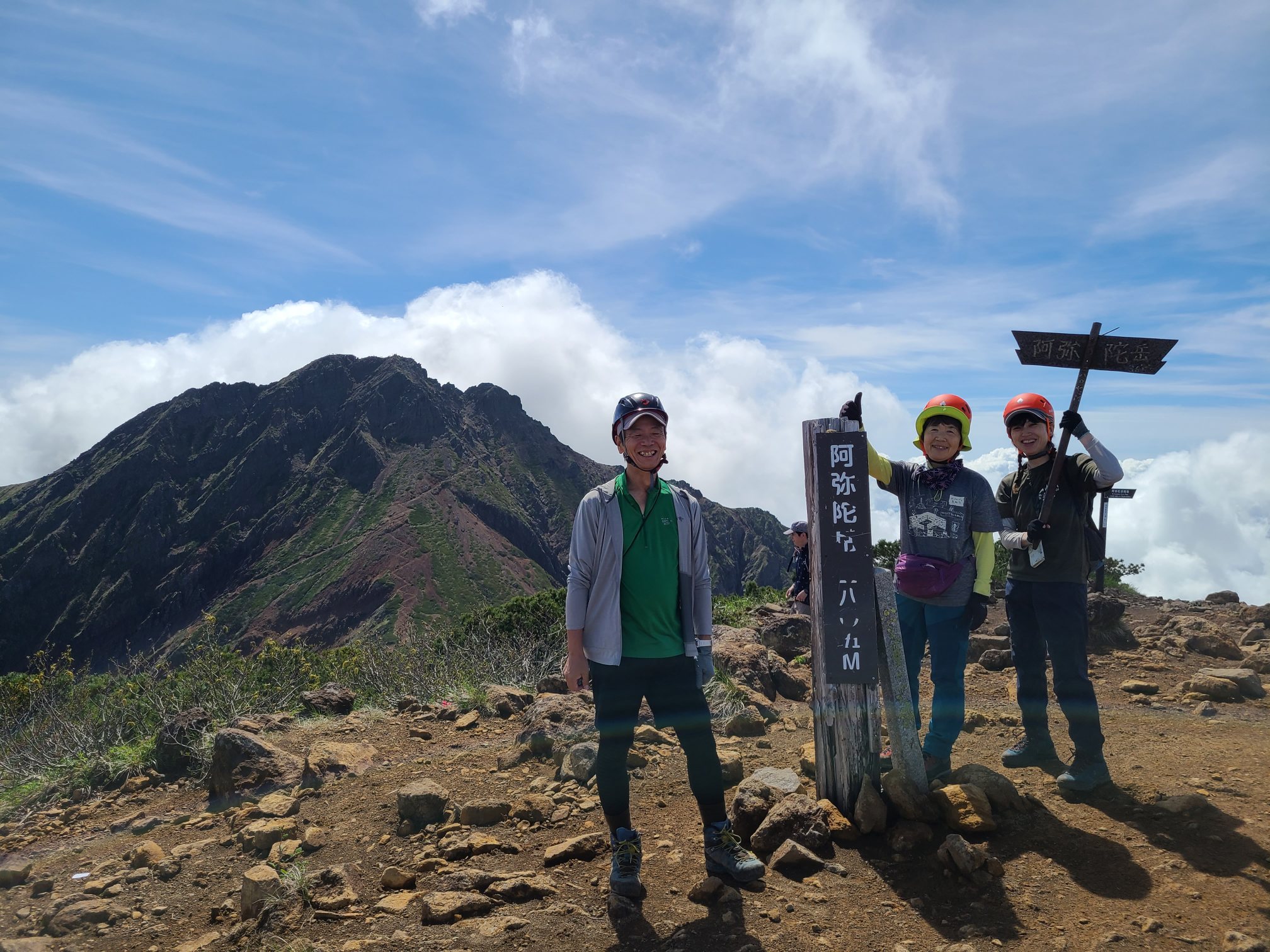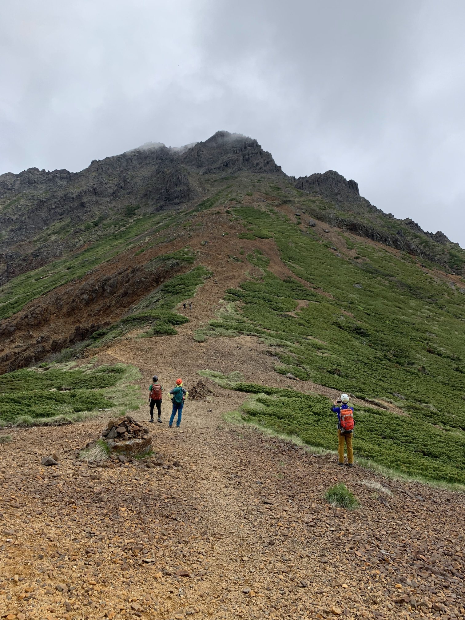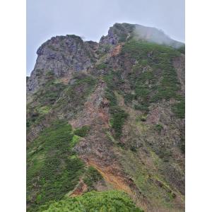 中岳のコルからは噂に聞いていた急斜面でかなり迫力がありました。石を落とさない様に神経は使いましたが、登ってみると高度感もなく意外とすんなり山頂に着きました。