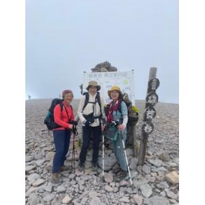 落ち着かない天気の中、雷も心配していましたがそれも無く2日目の朝は青空の中歩く事ができました。お目当ての『ツクモグサ』を沢山見る事ができて大満足でした。『ウルップソウ』は青く色付き初めた数株を見る事ができました。しかし硫黄岳山頂は初日も二日目ガスの中、なかなか天気のいい山頂に立てません。
